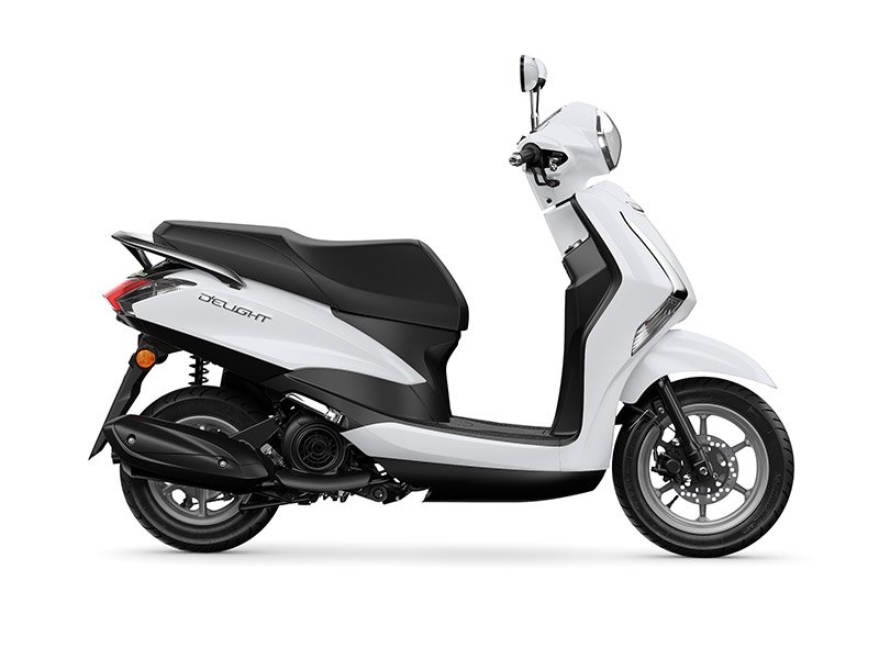 Featuring a fresh unisex look, the D'elight scooter delivers all of the above - and much more! It's the lightest urban commuter scooter, making it more enjoyable to ride and easier to manoeuvre - and the compact dimensions mean that it?s ideal for getting through traffic jams.^^Its quiet and economical 125cc engine features an automatic Stop & Start function to reduce emissions for a cleaner environment, while the storage space under the dual seat can accommodate a full-face helmet. The Yamaha badge means that reliability is assured and with its extremely competitive price, the D'elight makes more sense in every way.