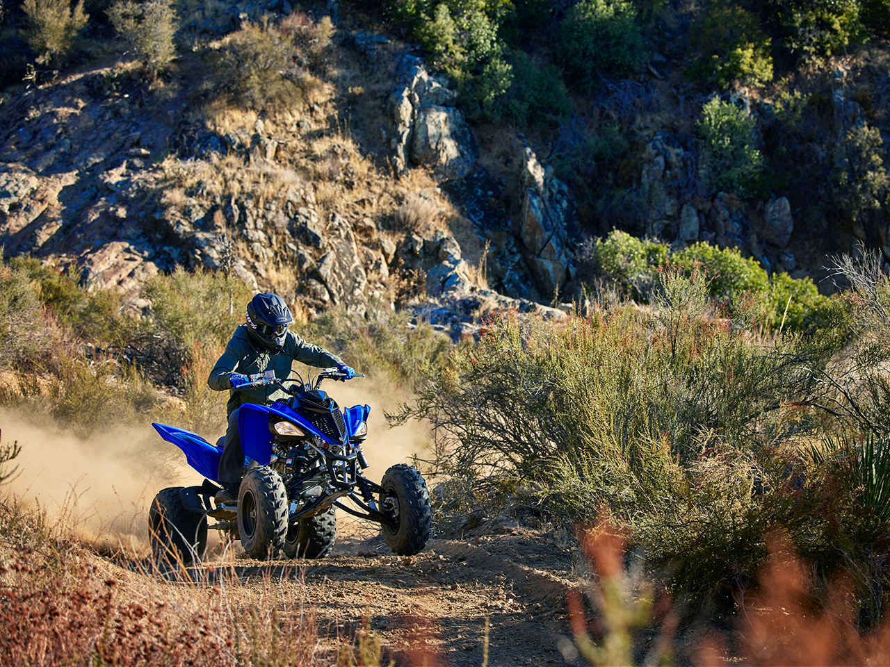 The YFM90R may be small in size, but it's equipped with several features found on larger Yamaha models - including double A-arm independent front suspension, drum brakes, CVT transmission and electric start.